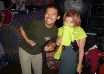 | ビルの入り口で宴会? | 楽屋でも宴会・・(笑) |