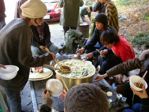 バンガローの雑魚寝スペースに豚汁でしたっけ?